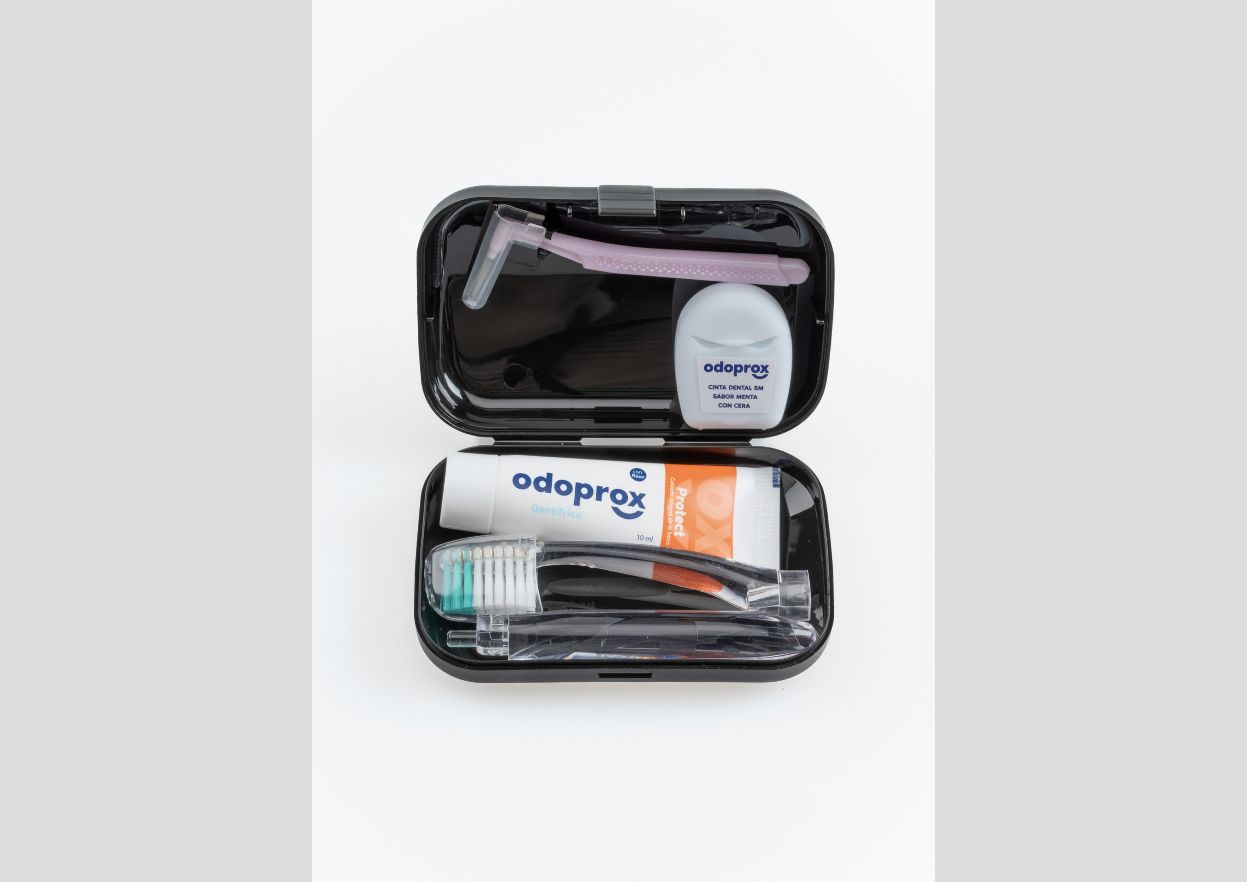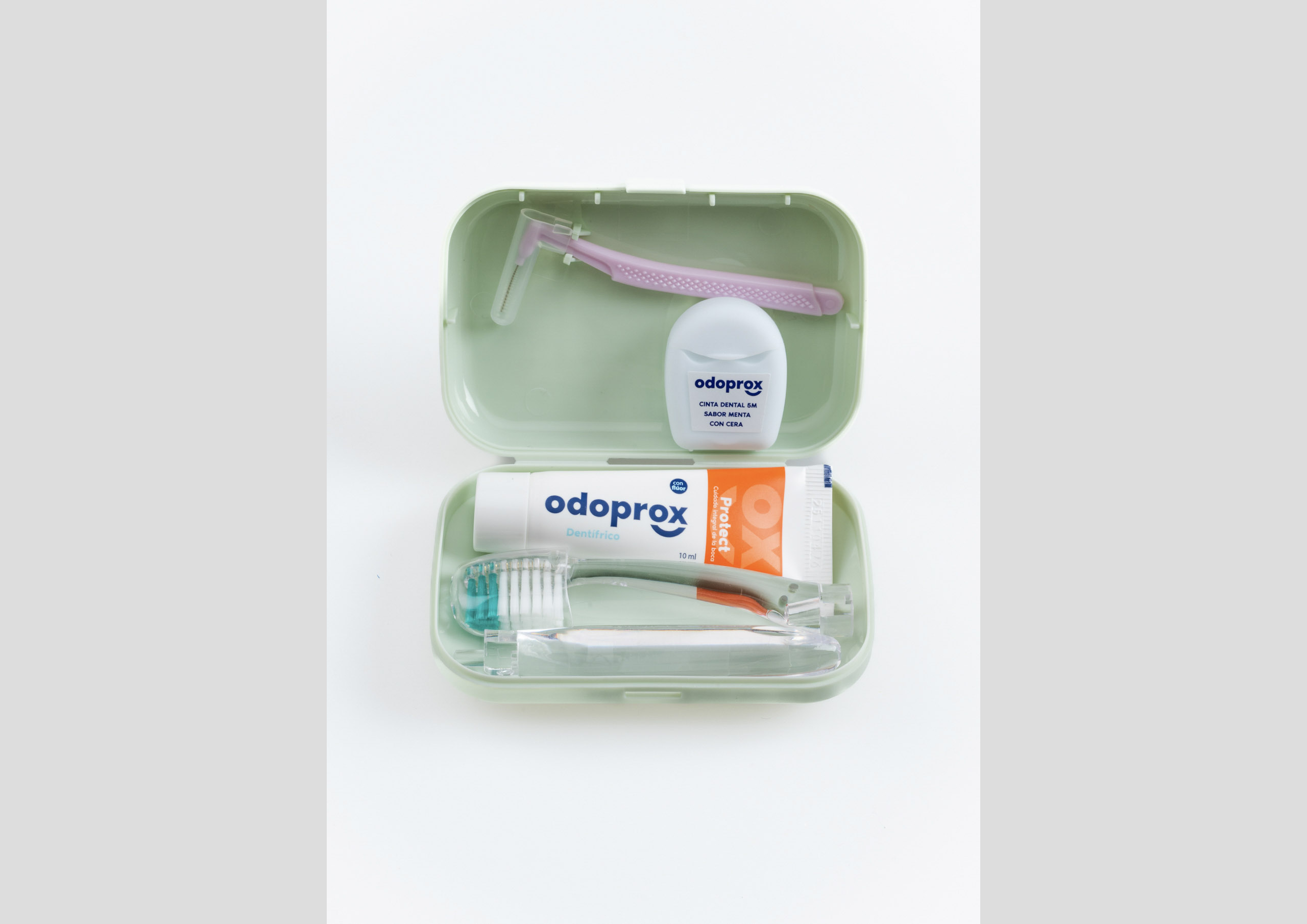 • Dentífrico Anticaries Odoprox 10 ml: Con 1500 ppm de flúor y extracto de papaína ayudando a prevenir la acumulación de biofilm y a eliminar manchas en el esmalte. CONTIENE: Sodium Fluoride 0,325%.